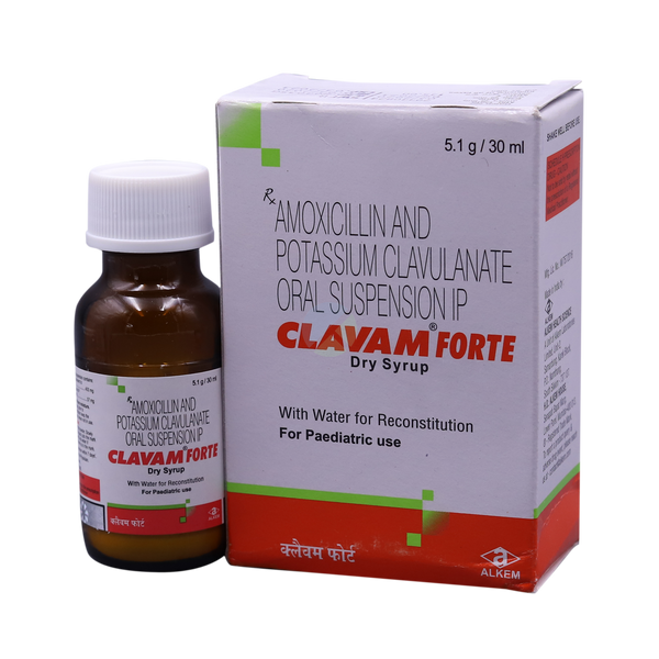 Clavam Forte Dry Syrup is an antibiotic designed to combat bacterial infections in children. It effectively treats infections affecting the ear, nose, throat, chest, lungs, teeth, skin, and urinary tract. Additionally, it is useful against bacteria that have developed resistance to other treatments, including some forms of drug-resistant tuberculosis.