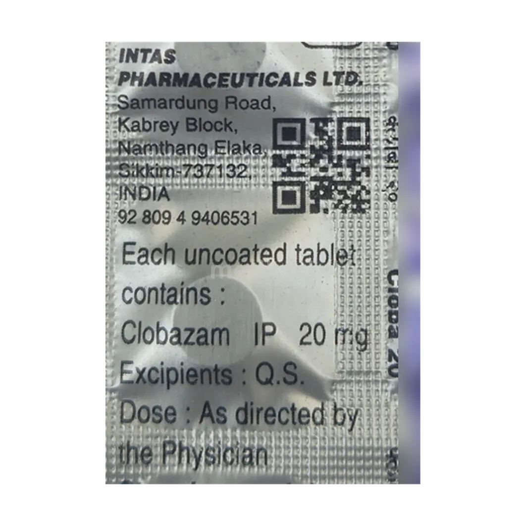 Cloba 20mg Tablet is a medication that belongs to the benzodiazepine group of medicines. It is primarily prescribed for managing epilepsy, which causes seizures, and for treating severe anxiety disorders. This medicine works by calming the overactive nerve signals in the brain, helping to reduce abnormal brain activity.