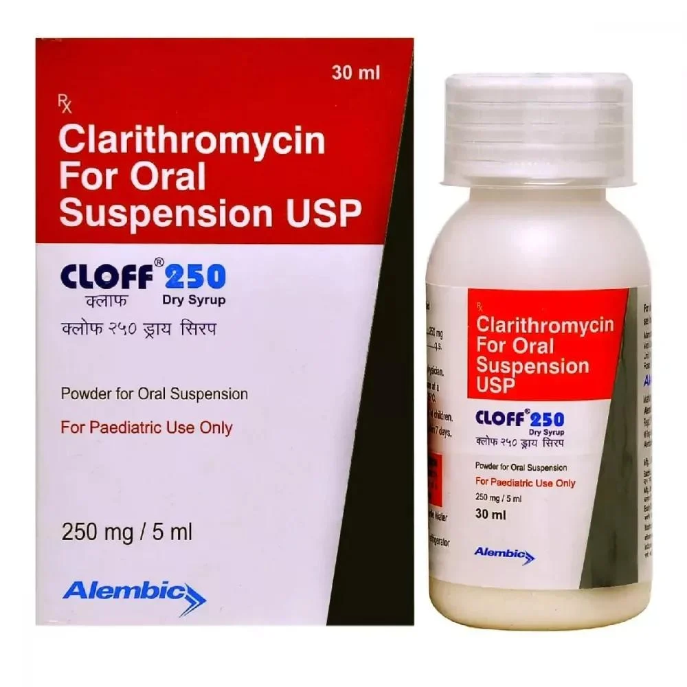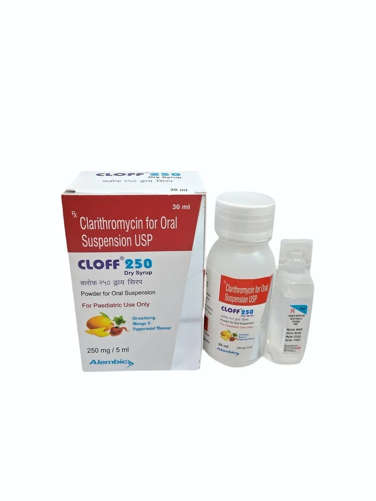 Clarithromycin, the active ingredient in Cloff 250 Dry Syrup, belongs to the macrolide class of antibiotics. It works by binding to bacterial ribosomes, inhibiting protein synthesis, and thereby preventing bacterial growth and replication. This action helps in resolving the infection caused by susceptible bacteria.