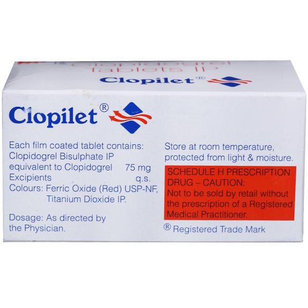 Clopilet Tablet is an antiplatelet medicine (blood thinner) that helps prevent the formation of harmful blood clots in blood vessels. By keeping blood flowing smoothly, it lowers the risk of heart attack, stroke, and other cardiovascular complications.