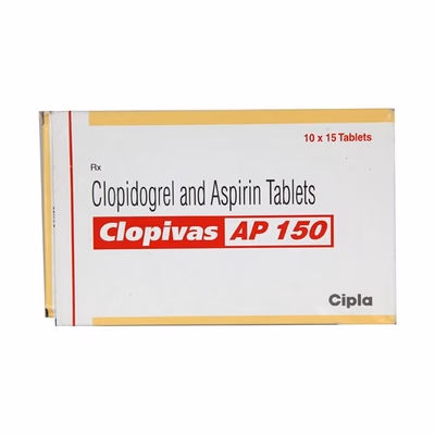 Clopivas AP 150 Tablet is a prescription medication designed to support cardiovascular health and prevent blood clot-related complications. It contains Clopidogrel and Aspirin, which work together to reduce the risk of heart attacks, strokes, and other vascular events. This combination helps maintain smooth blood flow, inhibits platelet aggregation, and provides enhanced protection for individuals with heart disease or a history of vascular disorders.