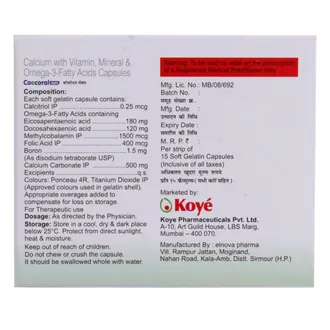 Coecoral Max Tablet is a nutritional supplement specially formulated to support bone strength, muscle health, and overall vitality. It combines essential nutrients such as Coral Calcium, Vitamin D3, Magnesium, and Zinc that work together to enhance calcium absorption, maintain bone density, and promote healthy joint and muscle function. It is highly beneficial for people suffering from calcium deficiency, postmenopausal women, elderly individuals, and those recovering from fractures or bone-related disorders.