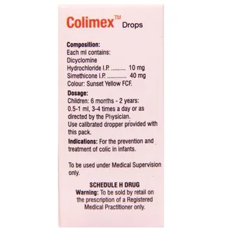 Colimex Oral Drops is a commonly prescribed medicine for relieving stomach pain, gas, and bloating caused by intestinal colic, especially in infants and young children. It helps in calming the stomach muscles, reducing cramps, and easing discomfort due to trapped gas or indigestion. The drops are gentle, fast-acting, and safe for children when used as directed by a doctor, making them a trusted remedy for colicky pain and digestive uneasiness.