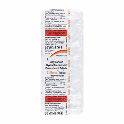 Colimax Tablet is a combination medicine that helps relieve abdominal pain, cramps, bloating, and discomfort caused by gas or indigestion. It works by relaxing the intestinal muscles and allowing the trapped gas to pass easily, providing quick relief from stomach spasms. This medicine is often prescribed for individuals suffering from irritable bowel syndrome, intestinal colic, and digestive disturbances. Colimax Tablet is suitable for both adults and children when taken as advised by a doctor.