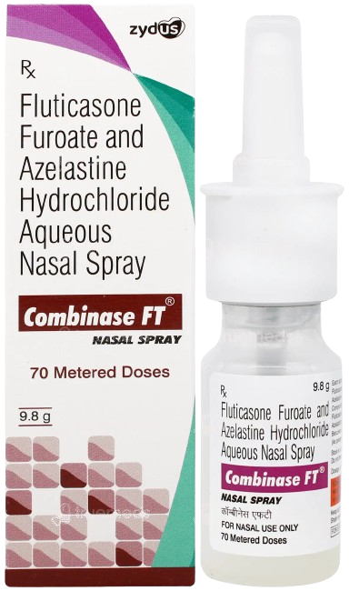 Combinase FT Nasal Spray is a combination medicine formulated to relieve symptoms of allergic rhinitis such as sneezing, runny or stuffy nose, nasal congestion, watery eyes, and irritation. It contains Fluticasone Propionate and Azelastine, which together help reduce inflammation and allergic responses, providing quick and long-lasting relief from nasal allergies.