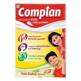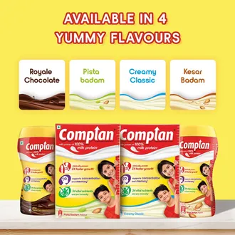 Complan Pista Badam is a nutritious health drink enriched with proteins, vitamins, minerals, and natural flavors of pista (pistachio) and badam (almond). It is specially formulated to support growth, brain development, immunity, and overall well-being in children and adults. The combination of pista and almond not only provides a delicious and aromatic taste but also supplies energy, essential nutrients, and healthy fats for an active lifestyle.