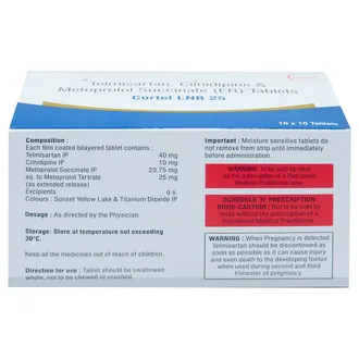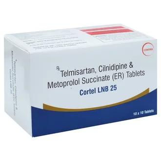 Cortel LNB 25 Tablet, Telmisartan + Nebivolol + Cilnidipine Tablet, Cortel LNB Blood Pressure Control Tablet, Cortel LNB Hypertension Management Medicine, Cortel LNB Cardiovascular Support Tablet.