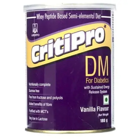 Critipro DM Powder is a premium nutritional supplement designed to support individuals with diabetes. It combines high-quality undenatured proteins, medium-chain triglycerides (MCTs), resistant starch, and a range of essential vitamins and minerals to help maintain blood sugar levels, promote muscle growth, and enhance overall nutritional health. The formulation is suitable for those looking to manage weight, support metabolic health, and meet their dietary needs more effectively.
