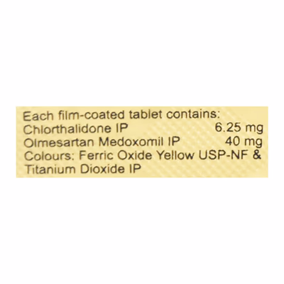 CTD-O 6.25/40 Tablet contains two active ingredients — Olmesartan Medoxomil and Chlorthalidone. Olmesartan Medoxomil relaxes blood vessels by blocking the action of angiotensin II, allowing smoother blood flow. Chlorthalidone is a diuretic that removes excess water and salts from the body, helping to lower blood pressure.