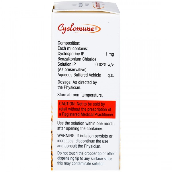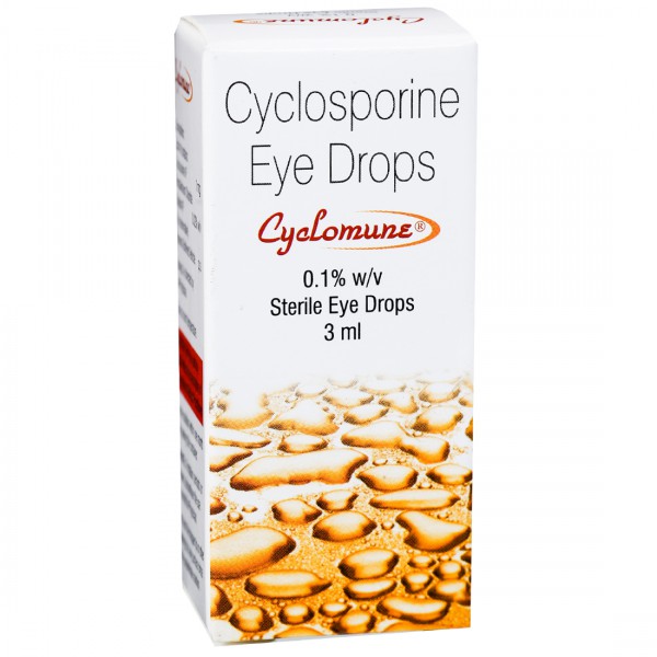 Cyclomune 0.1% Eye Drops 3 ml is an immunomodulator used to increase natural tear production in people with chronic dry eye disease that does not improve with artificial tears or lubricating eye drops. It is also indicated for the treatment of severe keratitis (inflammation of the cornea) associated with dryness or autoimmune eye conditions.