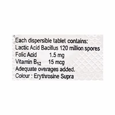 Lactic Acid Bacillus restores the natural balance of beneficial bacteria in the digestive tract, improving digestion and absorption. Folic Acid supports cellular health and red blood cell production, while Vitamin B12 helps convert food into energy and supports the nervous system. Together, these ingredients work to maintain digestive comfort and overall vitality.