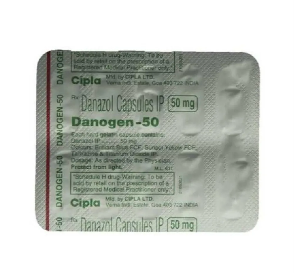 Danogen 50 Capsule works by lowering the levels of hormones such as estrogen and progesterone in the body. This reduces hormone-driven symptoms including menstrual pain, endometriosis discomfort, and breast tenderness.
