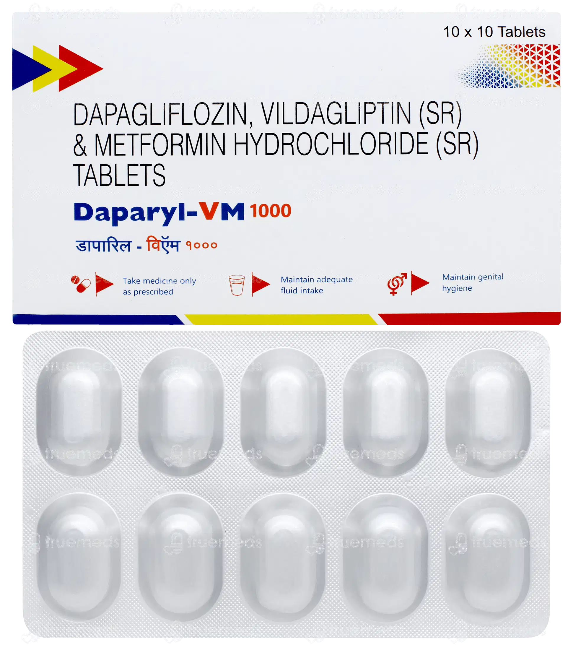 Daparyl-VM 1000 Tablet is a combination medicine designed to help manage blood sugar levels in individuals with type 2 diabetes mellitus. It works best when used along with a balanced diet and regular exercise. This medication improves the body’s use of insulin, which helps in lowering blood glucose levels effectively.