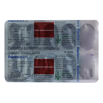 Dapaturn M 10 Tablet ER is an extended-release combination medication designed to support effective management of type two diabetes. By combining two active agents, it works to regulate blood sugar levels, improve insulin sensitivity, and reduce glucose production in the liver. The extended-release formulation ensures gradual absorption of the active ingredients, helping maintain stable blood sugar levels throughout the day and minimizing fluctuations. This tablet is intended for adults diagnosed with type two diabetes and should be used alongside lifestyle measures such as a balanced diet, regular exercise, and proper weight management. Dapaturn M supports overall metabolic health, boosts energy, and reduces the risk of long-term complications such as nerve damage, kidney disorders, and cardiovascular issues. Regular monitoring ensures safe and effective blood sugar control while minimizing potential side effects.