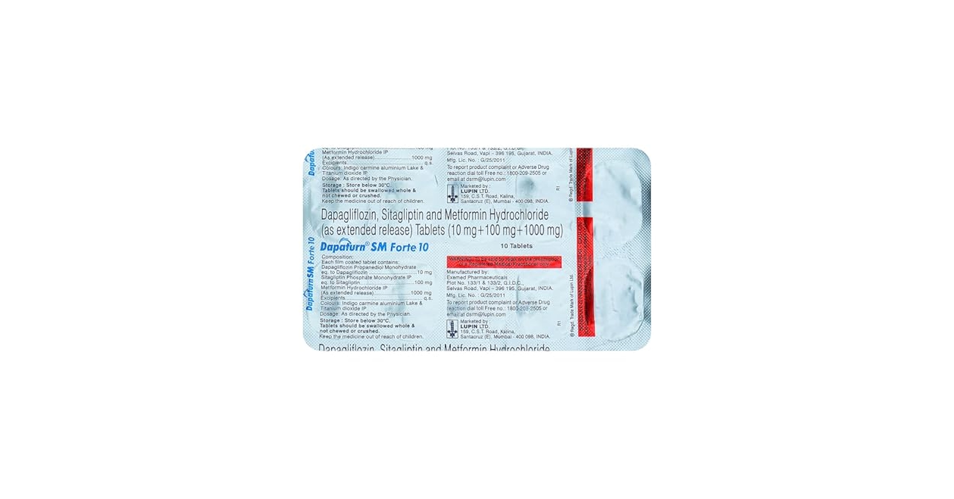 Dapaturn SM Forte 10mg/1000mg/100mg Tablet ER – Product Information