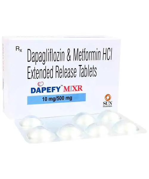 Dapefy M XR 10mg/500mg Tablet is an extended-release combination medication designed to support effective management of type two diabetes. By combining two active agents, it helps regulate blood sugar levels, improve insulin sensitivity, and reduce glucose production in the liver. The extended-release formulation allows gradual absorption of the active ingredients, maintaining stable blood sugar throughout the day and minimizing fluctuations. This tablet is intended for adults diagnosed with type two diabetes and should be used alongside lifestyle interventions such as a balanced diet, regular exercise, and proper weight management. Dapefy M XR promotes overall metabolic health, enhances energy, and reduces the risk of long-term complications such as nerve damage, kidney disorders, and cardiovascular issues. Regular monitoring ensures safe and effective blood sugar control while minimizing potential side effects.