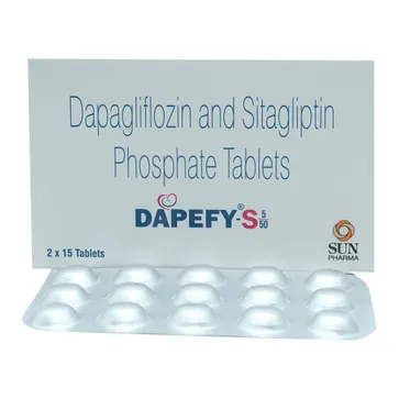 Dapefy-S 5/50 Tablet is a combination medication formulated to manage type two diabetes effectively. It contains two active agents that work together to regulate blood sugar levels, improve insulin sensitivity, and reduce glucose production in the liver. This tablet supports stable blood sugar throughout the day, including both fasting and post-meal glucose levels. Dapefy-S is intended for adults diagnosed with type two diabetes and should be used alongside lifestyle modifications such as a balanced diet, regular exercise, and proper weight management. Regular monitoring ensures safe and effective blood sugar control while minimizing potential side effects. The tablet also helps reduce the risk of long-term complications such as nerve damage, kidney disorders, and cardiovascular issues, making it a dependable choice for ongoing diabetes management.
