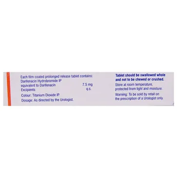 Darilong 7.5 Tablet PR is a prolonged release medicine that contains Darifenacin as its main ingredient, mainly prescribed for the treatment of overactive bladder and urinary incontinence. This condition is often marked by frequent urination, urgency, and accidental leakage which can affect daily routine and confidence. The tablet belongs to the class of antimuscarinic medicines that work by relaxing the bladder muscles, increasing its capacity to hold urine, and reducing unwanted contractions. The prolonged release form ensures a steady and long lasting effect throughout the day with a single dose. By helping to control frequent trips to the washroom, Darilong 7.5 Tablet PR not only provides physical relief but also improves emotional wellbeing, sleep quality, and social comfort. It should be used under medical advice as it may carry side effects and requires precautions for safe and effective results.