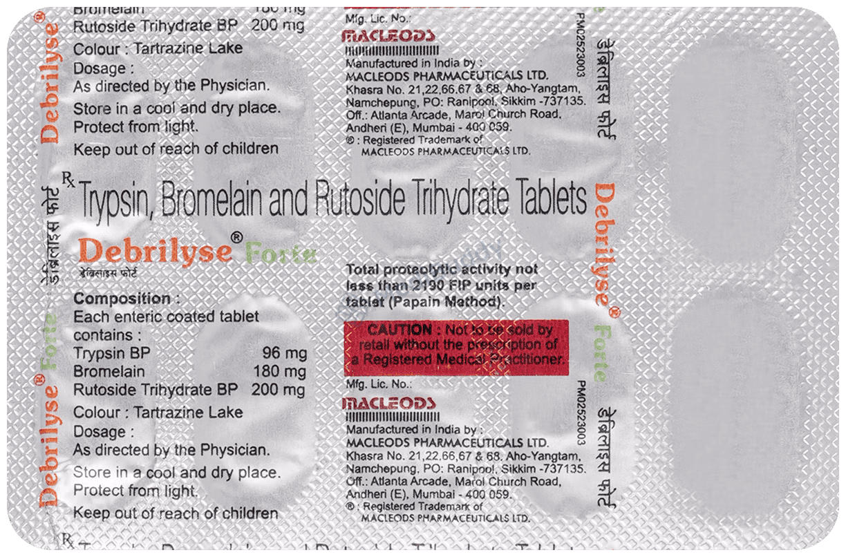 Debrilyse Forte Tablet is a specialized oral medication designed to support wound healing and tissue repair by promoting efficient removal of dead tissue and supporting cellular regeneration. The tablet contains active ingredients that work synergistically to improve blood circulation, enhance oxygen supply to tissues, and accelerate the natural healing process. Debrilyse Forte is particularly beneficial for patients with chronic wounds, ulcers, or post-surgical tissue damage, as it helps reduce infection risk and encourages the formation of healthy granulation tissue. Regular use under medical supervision can improve recovery times, reduce inflammation, and enhance overall tissue health. Its formulation is optimized for bioavailability, ensuring effective delivery of active components throughout the body. When combined with proper hygiene, a balanced diet, and medical guidance, Debrilyse Forte Tablet supports holistic wound management, improves patient comfort, and promotes faster return to normal activities.