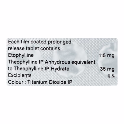 Deriphyllin Retard 150 Tablet PR is a sustained-release bronchodilator that provides effective and long-lasting relief from breathing problems caused by conditions such as asthma, chronic bronchitis, emphysema and chronic obstructive pulmonary disease. It works by relaxing the smooth muscles of the airways, widening the bronchial passages and improving airflow to the lungs. This action reduces symptoms like wheezing, coughing, chest tightness and shortness of breath. The prolonged-release formulation ensures a steady effect throughout the day, minimizing the need for frequent dosing and supporting better respiratory control. By enhancing oxygen supply and easing airflow resistance, Deriphyllin Retard 150 Tablet PR helps improve lung function and overall breathing capacity. When taken regularly under medical supervision, it not only prevents acute asthma attacks but also supports long-term respiratory health, improving stamina and quality of life for patients with chronic lung diseases.