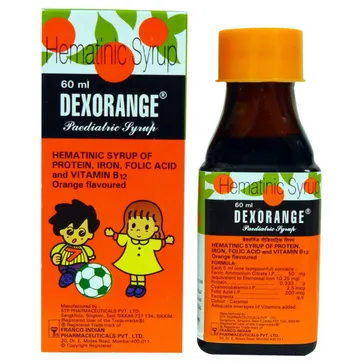 Dexorange Paediatric Syrup Orange is a specially formulated hematinic syrup for children that helps in the management and prevention of nutritional anemia. It is enriched with iron, folic acid, and vitamin B12, which are essential for healthy blood formation and proper growth. The syrup is designed in a palatable orange flavor to make it easy for children to consume without resistance. It supports the development of red blood cells, increases hemoglobin levels, and ensures an adequate oxygen supply throughout the body. Regular use helps children overcome weakness, fatigue, irritability, and poor appetite caused by anemia. It is particularly beneficial for children with poor dietary intake, during periods of rapid growth, and those recovering from illness or surgery. By restoring vital nutrients, Dexorange Paediatric Syrup Orange enhances immunity, supports cognitive development, and helps maintain overall health and vitality in growing children.