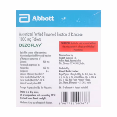 DEZOFLAV TABLET is a specially formulated dietary supplement designed to provide potent antioxidant support and boost overall immunity. Rich in flavonoids and essential nutrients, it helps combat oxidative stress, supports cardiovascular health, and enhances the body’s natural defense mechanisms. This tablet is suitable for adults seeking to improve general wellness, manage fatigue, and protect against cellular damage caused by free radicals. Regular use of DEZOFLAV TABLET promotes energy, supports metabolic processes, and aids in maintaining healthy skin and organ function. By integrating this supplement into a balanced diet, individuals can experience improved vitality, resilience against environmental stressors, and overall better health outcomes. Trusted for its high-quality ingredients and efficacy, DEZOFLAV TABLET is an essential addition to daily nutritional support for maintaining optimal physical and mental well-being.