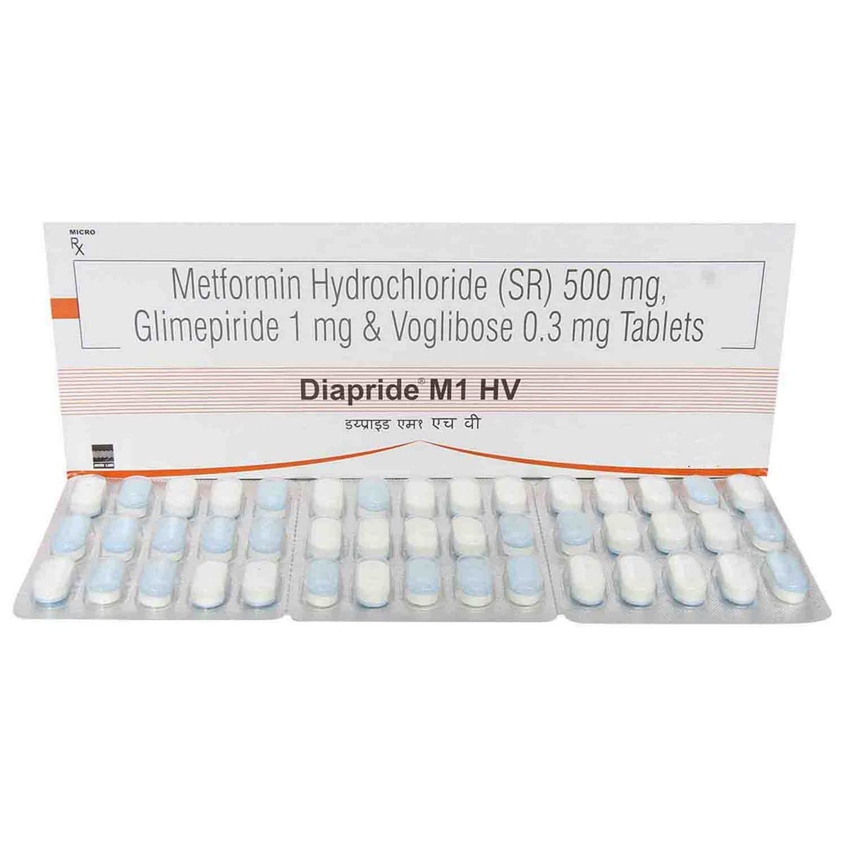 Diapride M1 HV tablet is a combination oral anti-diabetic medication designed to manage type two diabetes mellitus effectively. It combines the actions of a sulfonylurea and metformin to help regulate blood sugar levels throughout the day. The tablet works by stimulating insulin secretion from the pancreas and enhancing the body’s sensitivity to insulin, providing stable glycemic control. When used alongside a balanced diet, regular physical activity, and proper medical supervision, Diapride M1 HV tablet helps reduce the risk of long-term diabetes-related complications, including nerve damage, kidney problems, cardiovascular issues, and vision impairments. Its convenient dosing supports adherence, promotes steady blood sugar levels, and contributes to improved energy stability and overall quality of life for adults with type two diabetes.
