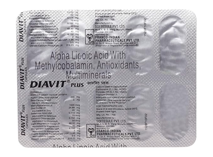 Diavit Plus Capsule is generally well-tolerated. Mild digestive discomfort may occur in some cases. Consult a healthcare professional if any adverse effects persist.