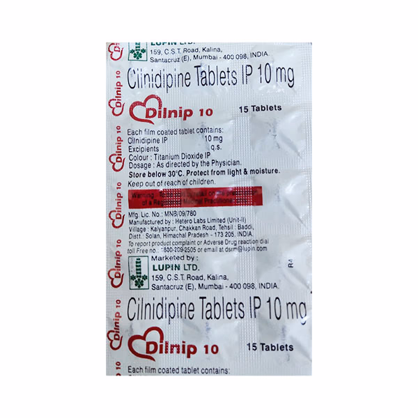 Dilnip 10 Tablet is a medicine used for the treatment of high blood pressure and chest pain caused by angina. It contains Cilnidipine, a calcium channel blocker that helps relax and widen blood vessels, allowing blood to flow more easily. This reduces strain on the heart, lowers blood pressure, and improves oxygen supply to the heart muscles.