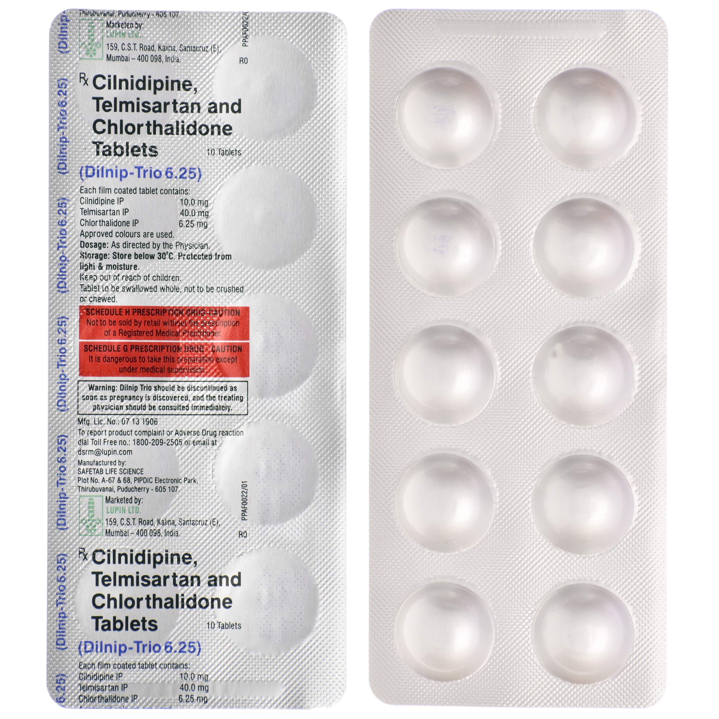 Dilnip-Trio Tablet is a combination medicine used for the treatment of high blood pressure. It contains three active ingredients that work together to relax blood vessels, reduce fluid overload, and lower the pressure on the heart. By controlling blood pressure effectively, it helps prevent complications such as stroke, heart attack, and kidney problems.