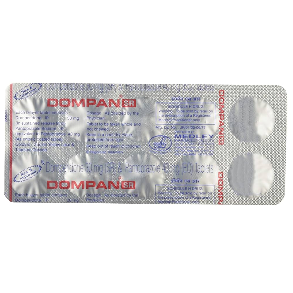 Dompan SR Tablet is a prescription medicine used for treating acidity, heartburn, indigestion, and reflux problems. It combines the action of two medicines that help reduce excessive stomach acid and improve movement of the digestive tract. This dual effect provides effective relief from gastric discomfort and related symptoms.