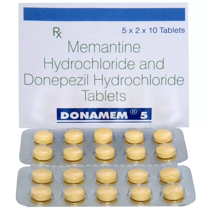 Donamem 5 Tablet is a prescription medication formulated to manage mild to moderate Alzheimer’s disease by enhancing memory, thinking, and overall cognitive function. This combination therapy works on key chemical messengers in the brain, supporting the transmission of nerve signals and slowing the progression of cognitive decline. By improving learning, memory retention, and information processing, Donamem 5 Tablet helps patients perform daily activities more effectively and maintain a better quality of life. The tablet can be taken with or without food, preferably at the same time every day to maintain consistent medicine levels. Regular use under medical supervision is essential, as the benefits may take several weeks to become noticeable. Your doctor will determine the appropriate dose based on your health, kidney and liver function, and response to the medication.