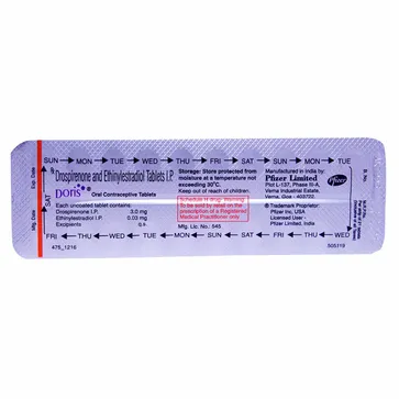Doris Tablet is a prescription medicine formulated to prevent pregnancy and manage irregular menstrual cycles effectively. It contains a combination of hormonal components that work together to prevent the release of eggs from the ovaries and create an environment in the uterus that is less favorable for fertilization and implantation. This medicine helps regulate periods and provides reliable contraception when used as directed by your healthcare professional. Doris Tablet can be taken with or without food, but consistent timing is essential to maintain its effectiveness. Regular usage under medical supervision ensures maximum benefit and minimizes potential risks. It is suitable for women seeking a non-intrusive contraceptive solution that does not interfere with daily activities. Monitoring and consultation with your doctor are important, particularly for women with a history of cardiovascular, liver, or kidney conditions.