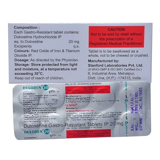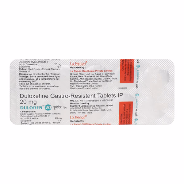 Duloren 20 Tablet, Duloren Tablet, Duloren 20, Duloren antidepressant tablet, Duloren nerve pain relief, Duloren fibromyalgia treatment, Duloren anxiety management, Duloren urinary incontinence