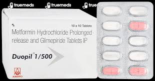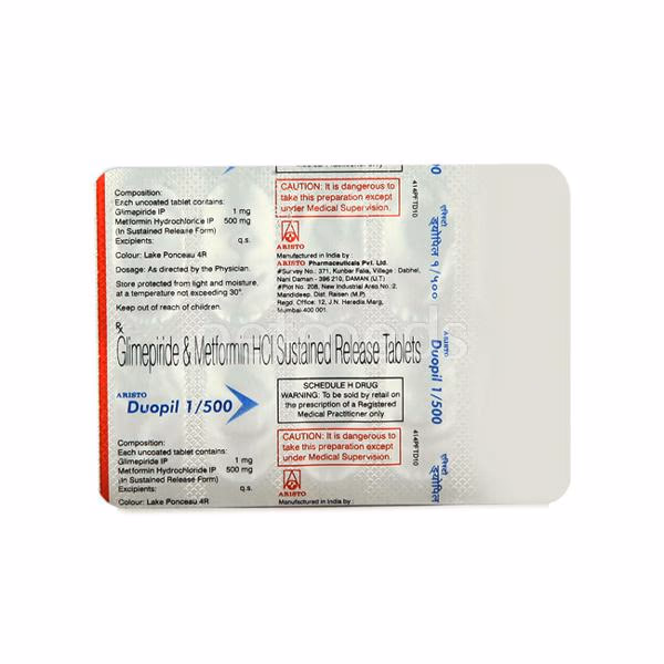 Duopil 1/500 Tablet PR is an anti-diabetic medicine prescribed for adults with type 2 diabetes mellitus. It contains two active components that work together to regulate blood sugar levels. Keeping glucose under control with this medicine helps reduce the chances of long-term diabetes complications.