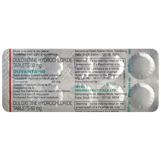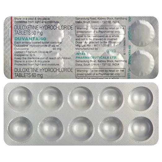 Duvanta 60 Tablet is a medicine commonly prescribed for conditions such as depression, anxiety disorders, diabetic nerve pain, fibromyalgia, neuropathic pain, and stress-related urinary incontinence. It works by balancing certain natural chemicals in the brain, particularly serotonin and noradrenaline, which help calm the mind, relax the nerves, and reduce the sensation of pain.