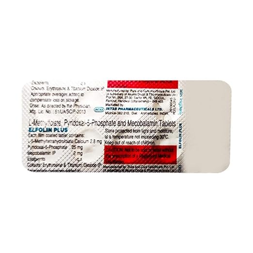 Elfolin Plus Tablet combines three essential nutrients. L-Methyl Folate helps to correct folate deficiency, promoting the production of new red blood cells and reducing the risk of anemia. Methylcobalamin and Pyridoxal-5-phosphate are important vitamins that restore nutritional balance, support hormonal health, and ensure proper growth and functioning of the body.