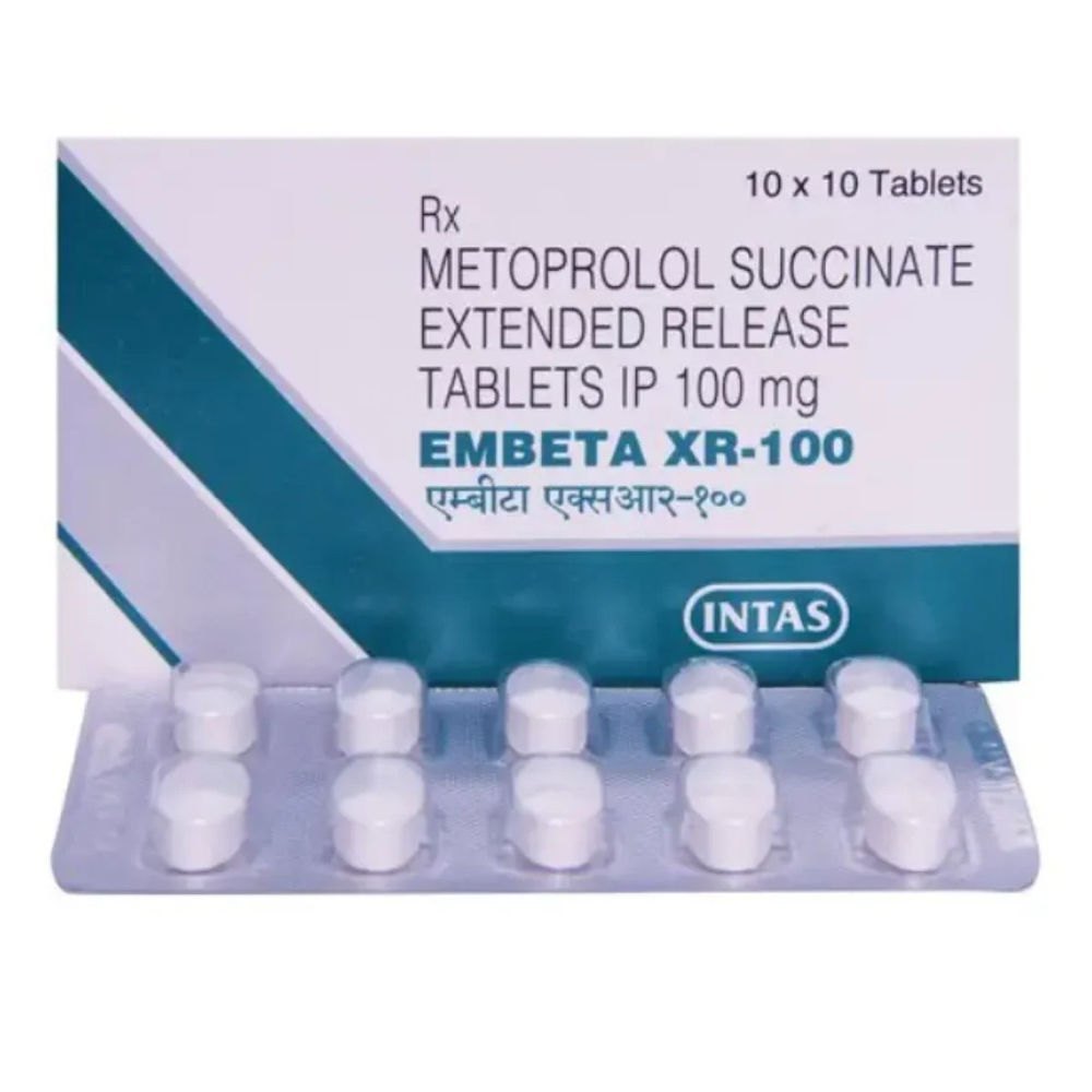 Embeta XR 100 Tablet is a medicine that falls under the category of beta-blockers. It is mainly prescribed for managing high blood pressure (hypertension), chest pain caused by heart-related issues (angina), and irregular heartbeats (arrhythmia). In addition, it helps in preventing migraines, future strokes, and heart attacks.