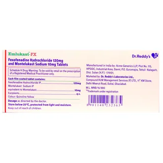 Emlukast-FX Tablet is a combination medication designed to manage allergy-related symptoms, including sneezing, runny nose, nasal congestion, and itchy or watery eyes. By addressing multiple allergy triggers, it helps you stay comfortable and maintain your daily routine without disruption.