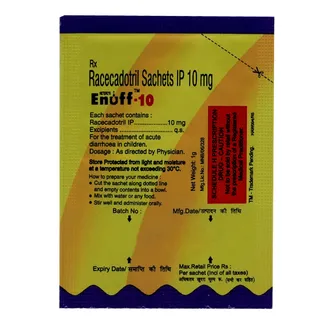 Enuff 10mg Sachet works by reducing the secretion of water and salts in the intestines. This anti-secretory action helps restore fluid balance, making stools more formed and less frequent, while alleviating dehydration, weakness, and discomfort associated with diarrhea.