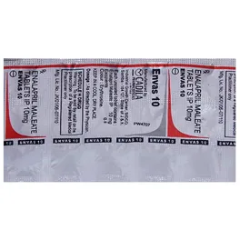ENvas 10 Tablet belongs to the class of ACE (angiotensin-converting enzyme) inhibitors, designed to manage high blood pressure, heart failure, and reduce the risk of cardiovascular events. This medication supports heart function, helps maintain healthy blood pressure, and can be prescribed following a heart attack to prevent complications. Regular intake ensures long-term cardiovascular benefits and lowers the likelihood of heart attack or stroke.