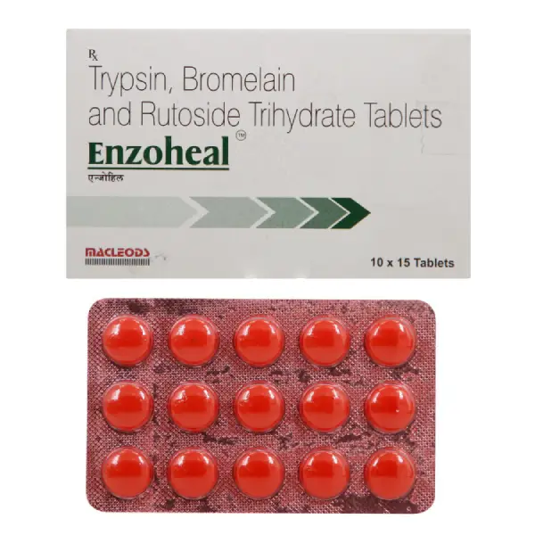 Enzoheal Tablet is a combination medicine widely used for its anti-inflammatory, analgesic, and healing properties. It contains proteolytic enzymes such as trypsin, bromelain, and rutoside (formulation may vary), which work together to reduce swelling, pain, and inflammation caused by injuries, post-surgical recovery, or chronic inflammatory conditions. This tablet enhances the body’s natural healing process by improving blood circulation, reducing clot formation, and supporting faster tissue repair. It is often prescribed for conditions like arthritis, muscle strain, sports injuries, post-operative pain, and soft tissue swelling. Enzoheal Tablet not only provides relief from pain but also helps in reducing stiffness, improving mobility, and speeding up recovery. Being an enzyme-based therapy, it is generally well-tolerated when taken as directed. However, it should always be used under medical guidance, as incorrect dosage or prolonged use may lead to unwanted effects.