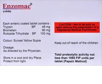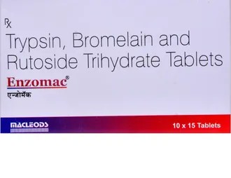 Enzomac Tablet is a combination medicine that contains Trypsin, Bromelain, and Rutoside. It is widely used to relieve pain, swelling, and inflammation associated with musculoskeletal injuries, post-surgical recovery, arthritis, and trauma. The unique blend of enzymes and antioxidants helps in breaking down abnormal proteins that cause swelling, improving blood circulation, and promoting faster tissue repair. Rutoside, a natural bioflavonoid, strengthens blood vessels, reduces oxidative stress, and supports overall healing. Unlike conventional painkillers, Enzomac not only provides symptomatic relief but also enhances the natural recovery process of the body. It is useful in sports injuries, joint stiffness, fractures, and inflammatory conditions. Regular use under medical supervision can reduce dependency on strong painkillers while supporting rehabilitation and long-term recovery.