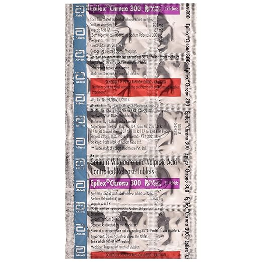 EPIlex Chrono 300 Tablet CR is a prescription medication formulated for the effective management of epilepsy, a neurological condition marked by recurrent seizures. This controlled-release tablet works to stabilize abnormal brain activity, calm nerve hyperactivity, and prevent seizures, helping patients lead a safer, more stable life.
