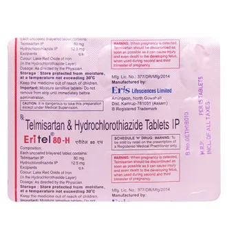Eritel 80-H Tablet, Eritel H Tablet, Eritel combination tablet, high blood pressure tablet, hypertension medication, Telmisartan Hydrochlorothiazide tablet