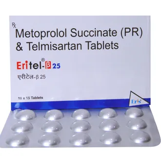 Eritel Beta Trio 25 Tablet ER is a combination medicine used to manage high blood pressure and support heart health. It combines three active components that work together to relax blood vessels, control heart rate, and reduce fluid retention, helping maintain a healthy blood pressure and decreasing the risk of cardiovascular complications.