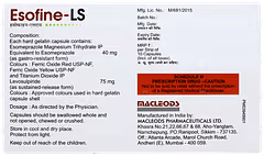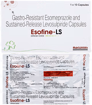 Esofine-LS Capsule SR is a combination medicine widely used for the treatment of acid reflux, gastroesophageal reflux disease (GERD), chronic gastritis, and indigestion associated with nausea, vomiting, and bloating. It usually contains Esomeprazole (a proton pump inhibitor) and Levosulpiride (a prokinetic agent). Esomeprazole reduces excess stomach acid by blocking acid-producing pumps in the stomach lining, providing effective relief from acidity, heartburn, and ulcer-related discomfort. Levosulpiride helps regulate gut movement, prevents reflux, and improves gastric emptying, thereby reducing bloating, nausea, and belching. The sustained-release (SR) formulation ensures prolonged effectiveness with once-daily dosing. This capsule is particularly useful for patients suffering from long-term acid reflux symptoms and related digestive disorders, improving both symptom control and quality of life. It should always be taken under the guidance of a healthcare professional for safe and effective results.