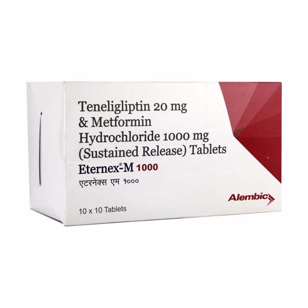 Eternex-M 1000 Tablet SR is an advanced combination medicine designed to effectively manage type 2 diabetes mellitus. It works by lowering high blood sugar levels and helps reduce the risk of serious long-term complications such as kidney damage, eye disorders, nerve problems, heart disease, and stroke. By controlling blood glucose levels, this medicine supports overall health and enables diabetic patients to lead a more balanced life.