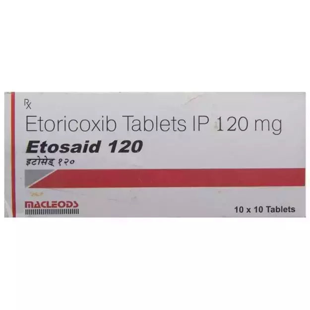 Etosaid 120 Tablet is a prescription medicine commonly used to manage pain, inflammation, and swelling in various musculoskeletal and joint-related conditions. It contains Etoricoxib, a selective COX-2 inhibitor, which works by blocking certain chemical messengers responsible for pain and inflammation without affecting the protective functions of the stomach lining as much as traditional NSAIDs. It is widely prescribed in conditions such as osteoarthritis, rheumatoid arthritis, ankylosing spondylitis, gout, and chronic back pain. Etosaid 120 provides effective relief from stiffness, joint discomfort, and pain, improving mobility and overall quality of life. Due to its potent action, it should only be taken under medical supervision and for the duration prescribed by a healthcare professional.