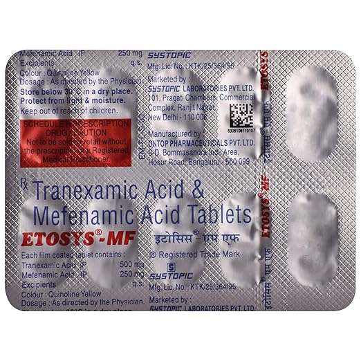 Etosys-MF Tablet is a combination medication formulated to manage heavy menstrual bleeding and relieve menstrual pain. By controlling excessive bleeding and reducing inflammation, it helps restore comfort and normalcy during menstrual cycles.